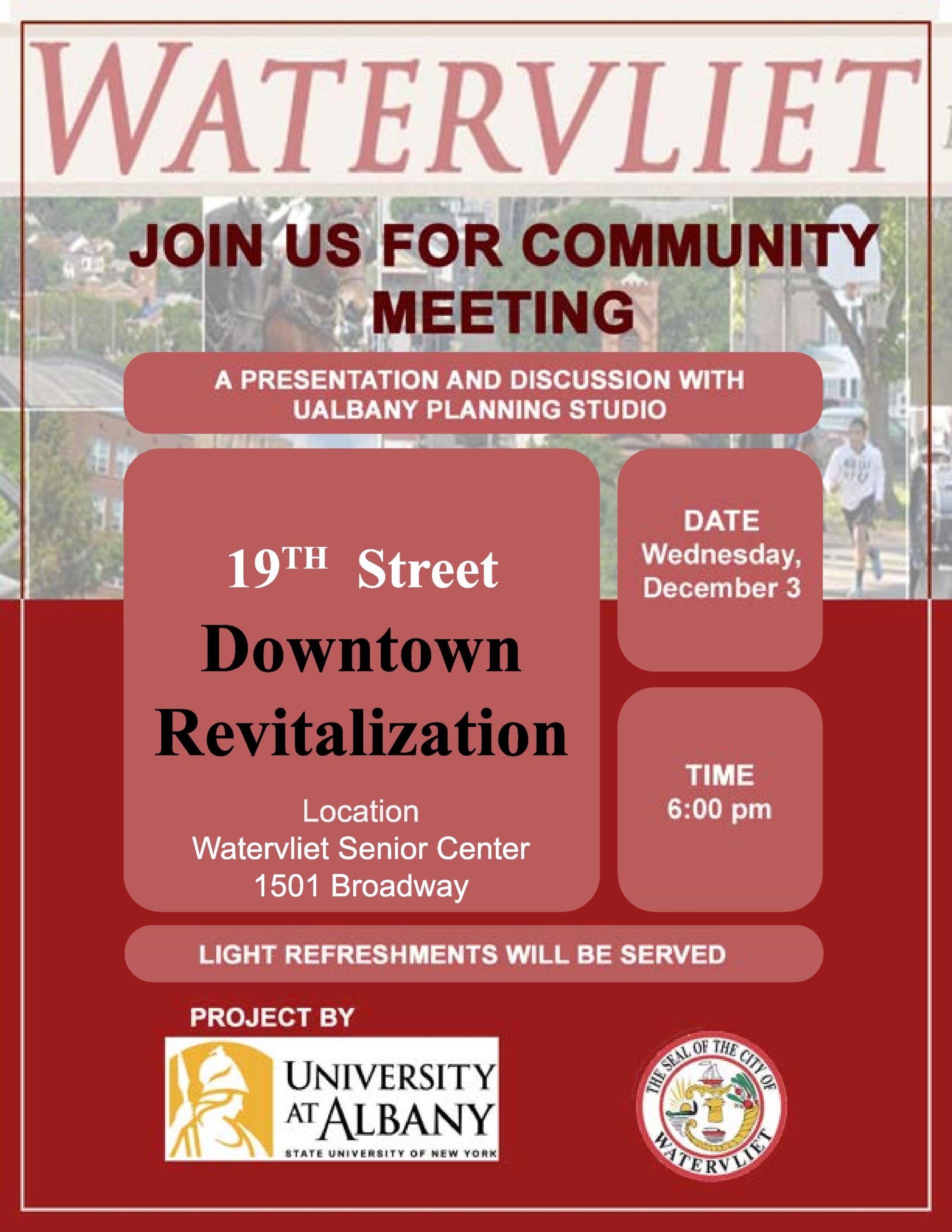 The City of Watervliet is taking an exciting step forward by preparing an application for New York State’s Downtown Revitalization Initiative (DRI) and NY Forward (NYF) program. These programs provide transformative funding to help reimagine and redevelop downtown areas across the state. With a focus on strategic investment in public spaces, housing, and business development, Watervliet aims to unlock new opportunities that reflect the community’s vision for the future.