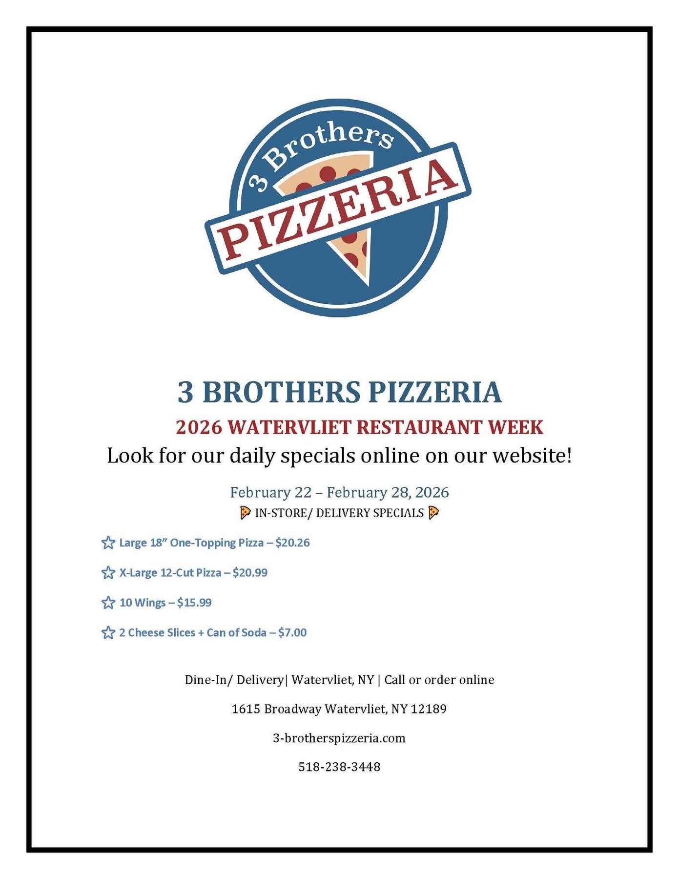 The City of Watervliet’s 2026 Restaurant Week will be Sunday, February 22-February 28, 2026.